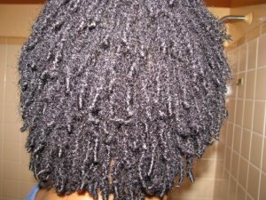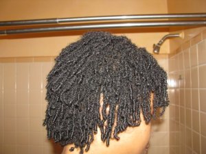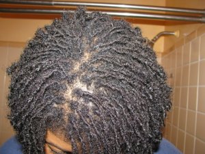 That brings me to the point that I wanted to mention to anyone who is considering locking that is starting out with 5+ inches of hair and will be latching/interlocking for maintenance. If your hair shrunk a lot when it was loose you are probably going to experience a lot of shrinkage while locking too. You’ll be wondering, oh where, oh where has my length gone?! Not to worry. Your hair is indeed growing. I think I see a bit of growth on the nape row. Remember I said before that this was the first area that started the locking process.