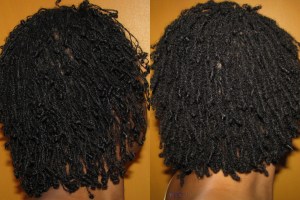 To anyone who might be reading this blog because you are thinking about locking and are starting out with 6+ inches of hair, be fore warned that you may end up after your 1 yr mark with the same length you started with or a bit less. I’ve found this to be consistent amongst other lockers as well. I guess because there is more hair that has to go thorough the condensing process. But what goes up, must come down…eventually.